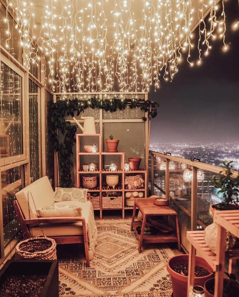 Гирлянда, подвешенная на потолке, смотрится очень креативно. Ее можно разместить как в комнате, так и на террасе. Романтика теплого мерцающего дождя – гарантирована!