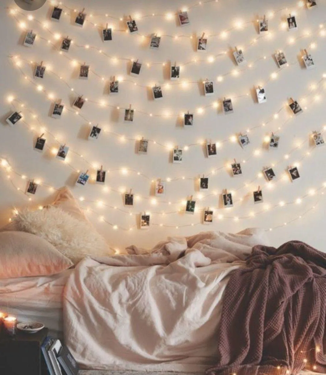 Фотографии самых ярких моментов жизни – всегда хорошая идея. Просто разместите гирлянду на стене и развесьте фотографии в хаотическом порядке. Сейчас идеальное время, чтобы обернуться в плед и любоваться красотой воспоминаний за чашечкой какао с маршмеллоу!