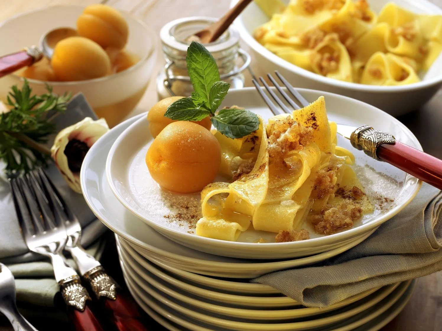 Ароматный макаронный десерт с абрикосовым соусом / Фото eatsmarter