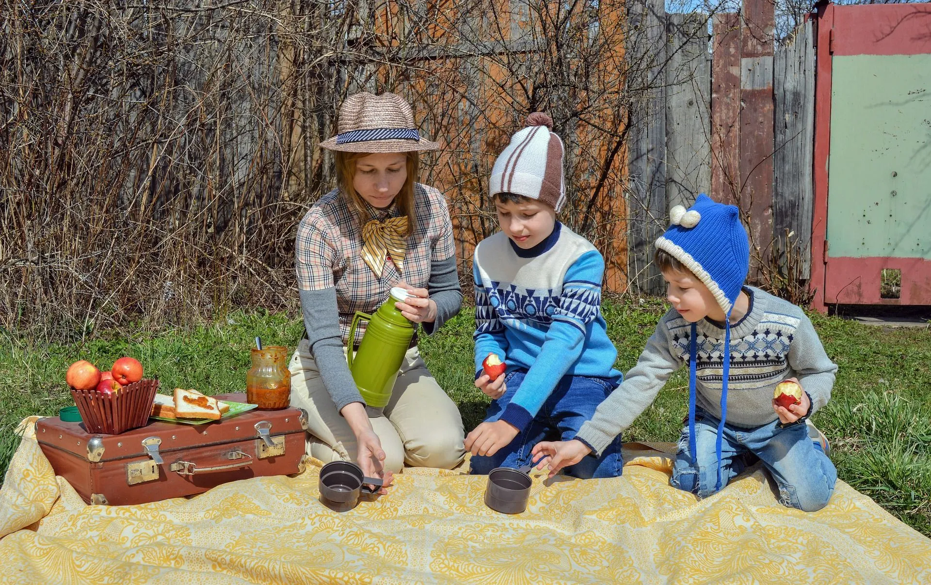 Легкий перекус на природі – прекрасний спосіб заповнити сили після активних ігор на свіжому повітрі! Розміщуйтесь зручніше на теплому пледі. З ним буде комфортно, а знімки наповняться домашнім затишком. Не забудьте захопити з собою термос з улюбленим гарячим напоєм!