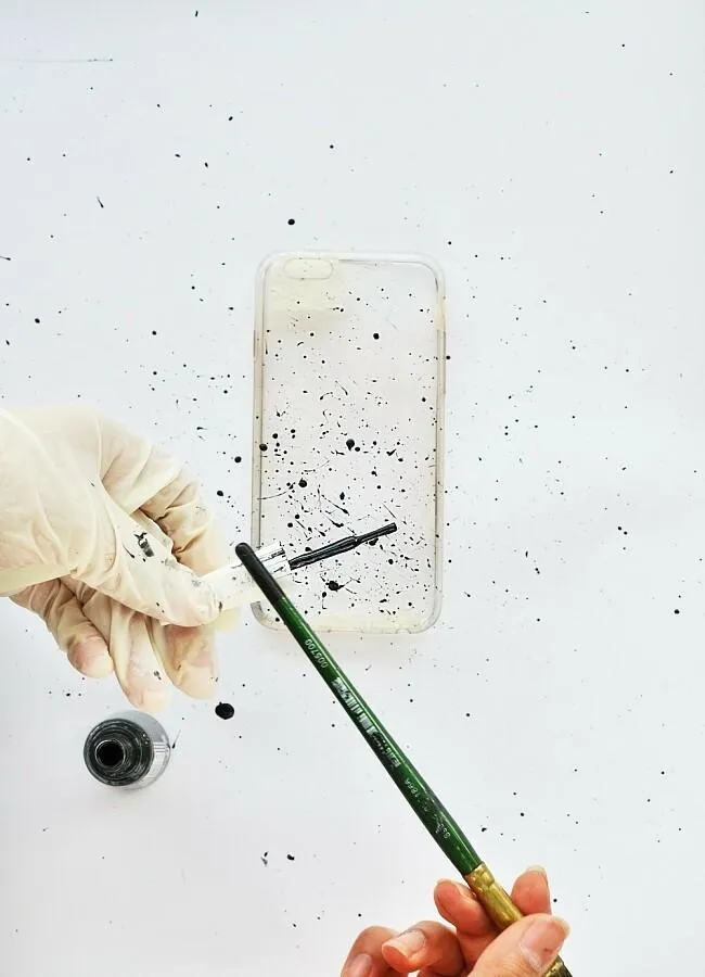 Крок 3. Знежирте поверхню ацетоном і нанесіть акрил тонким пензлем на силікон або пластик. Якщо ви обрали прозорий чохол, краще малювати його зсередини, використовуючи трафарет потрібного малюнку.