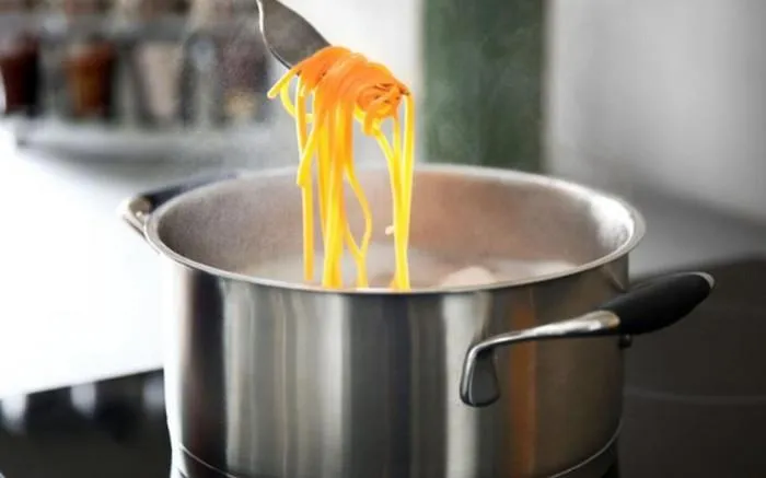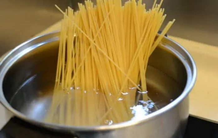 Кидають макарони в киплячу воду. Кипляча вода – та, яка б'є ключем, а не тільки починає шипіти.