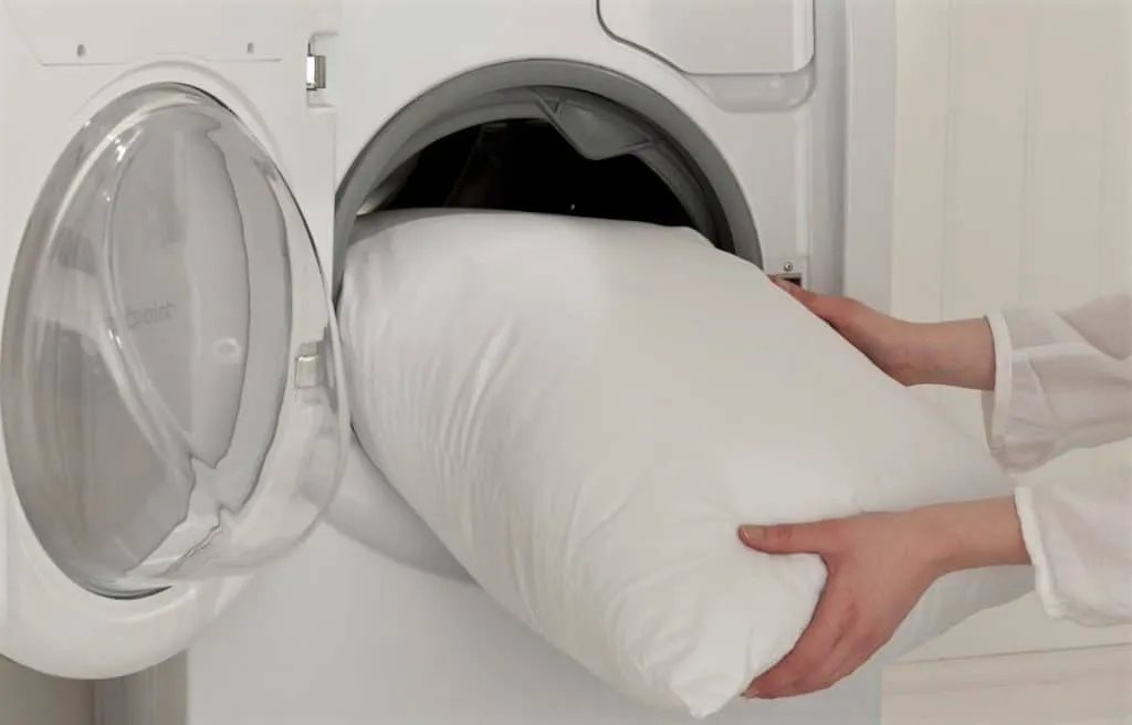 У пральній машині можна очищувати не лише постільну білизну, але й подушки. Оберіть делікатний режим та теплу воду і не забудьте увімкнути додаткове полоскання. Щоб пух всередині не збився, покладіть у барабан кілька тенісних м'ячів.