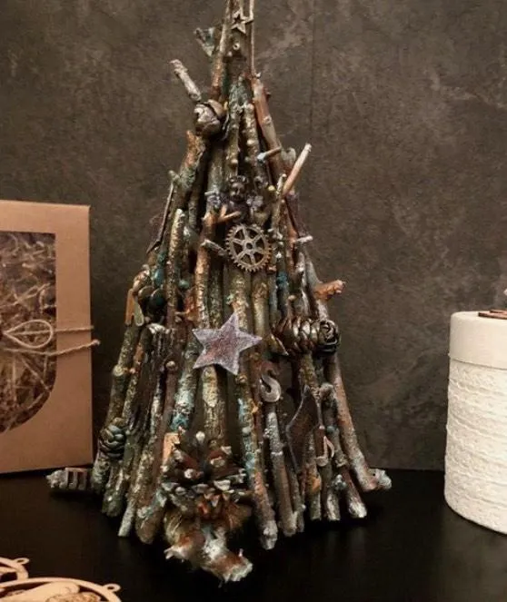 Доволі стильне та креативне рішення. Таку конструкцію можна або придбати, або змайструвати власноруч Посадіть у ящик гілочки ялинки, а от щодо декору – дайте волю своїй фантазії!