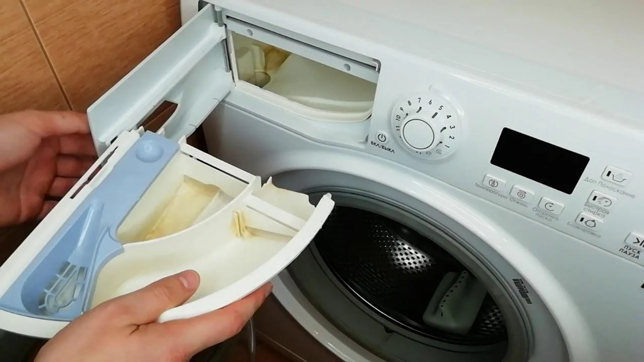 Практично у всіх сучасних пральних машинках відділ для пральних засобів можна легко дістати. Просто водою вимити контейнер не вдасться, тому потрібно ретельно вичистити щіткою. Також не забудьте промити місце для кріплення контейнера. Іноді на ньому може бути так званий "накип".