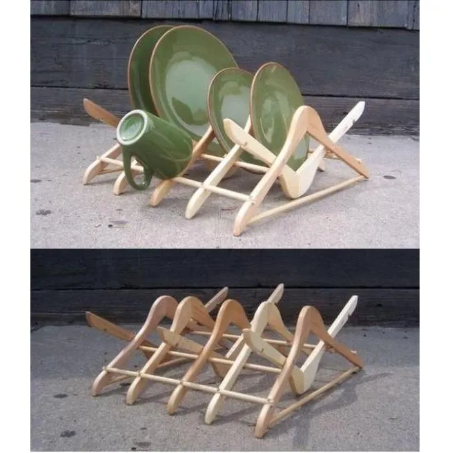 Дерев'яні вішаки чудово підійдуть для того, щоб змайструвати сушку для посуду.