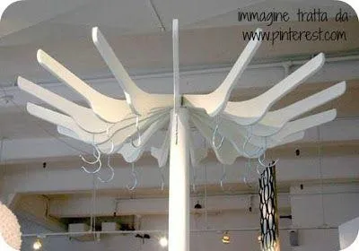 Оригінальний плафон можна зробити з вішалок. Але пам'ятайте, що він буде важкий, тому йому необхідно відповідне кріплення.