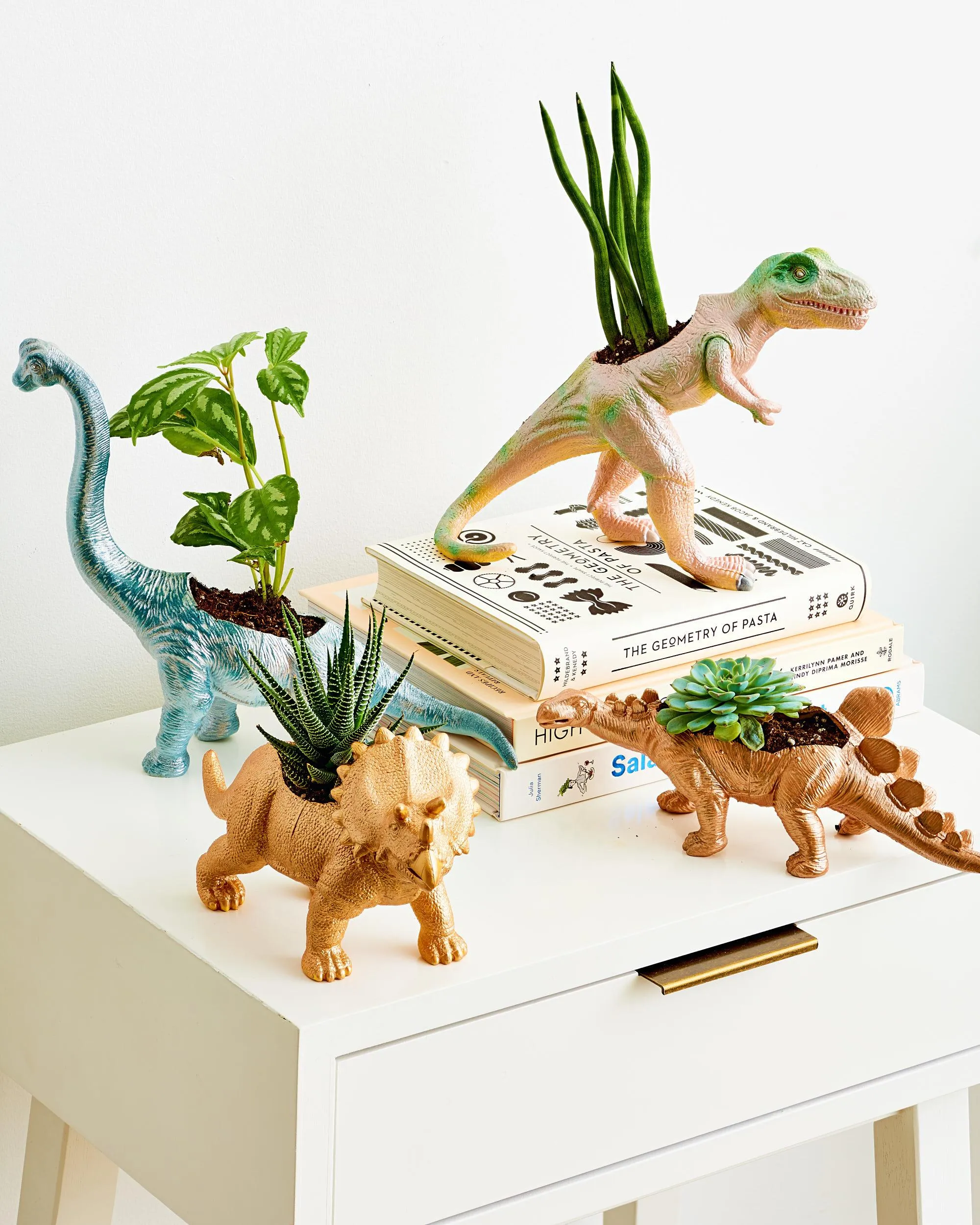 Старі іграшки можна перетворити у горщики або кашпо для вазонів чи сукулентів. Для цього варто лиш увімкнути фантазію і трішки покреативити. Найпростіший спосіб – зробити акуратні отвори в іграшках і відправити туди горщики з рослинами або просто рослини із землею.