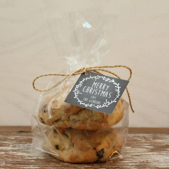 Найбюджетніший варіант пакування печива – целофанова плівка. Дизайн простий, але привабливий. Обов'язково використайте привабливу стрічку і приклейте або зав'яжіть бирку з побажаннями.