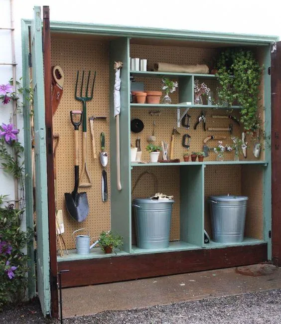 1. Перетворіть стару шафу для одягу на стенд для зберігання садових інструментів