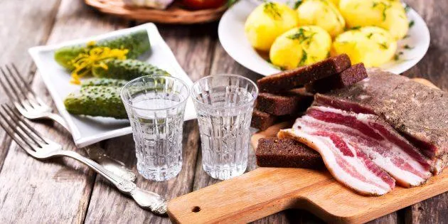 Перед тим, як почати вживати алкоголь, обов'язково потрібно перекусити. Найкраще для перекусу підійдуть бекон, горіхи, сало, бутерброди з маслом.