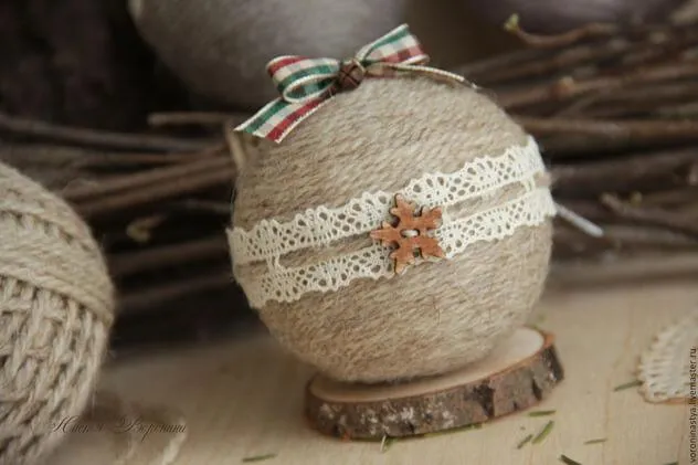Кульки, декоровані мереживною тканиною і тонкою мотузкою