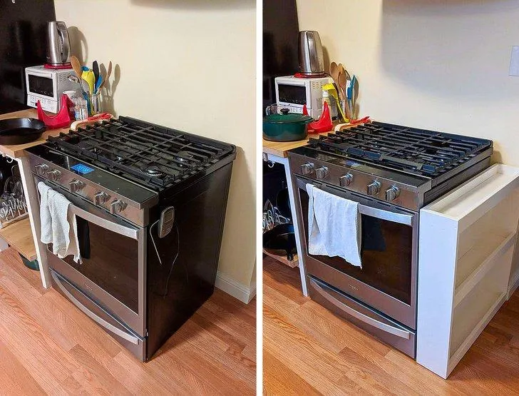Простора кухня – це мрія кожної господині. Але, на жаль, не завжди мрії збігаються з реальністю. Ті, хто має маленьку кухню завжди бідкаються про нестачу місця для різних кухонних "дрібничок". Ви можете зробити додаткову поличку біля кухонної плити. Закріпити її буде нескладно. А от місця для банок, контейнерів чи чашок точно знайдеться.