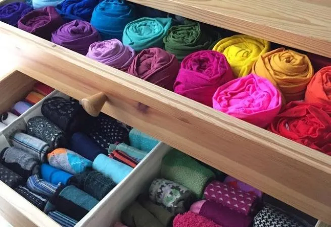 Якщо ви перфекціоніст, ви можете складати та розвішувати одяг за кольорами. Це виглядає дуже красиво, але займає трохи більше часу, ніж звичайне складання.
