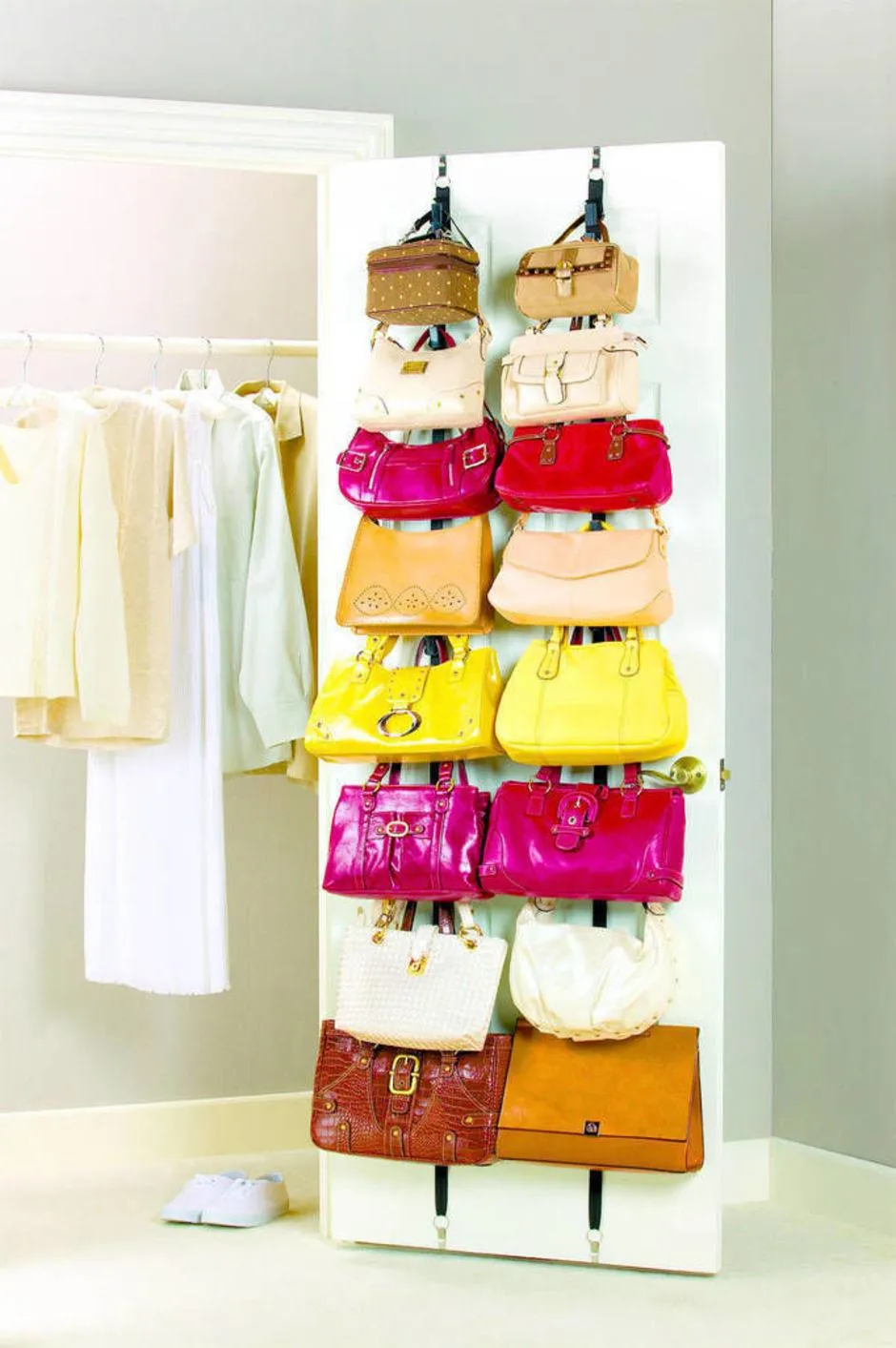 Якщо у вас в кутку якоїсь кімнати або на стільці довгий час накопичувалися якісь речі (наприклад, сумочки, кепки чи інші головні убори), ви можете розмістити їх на дверях. Особливо це актуально для власників маленької квартири.