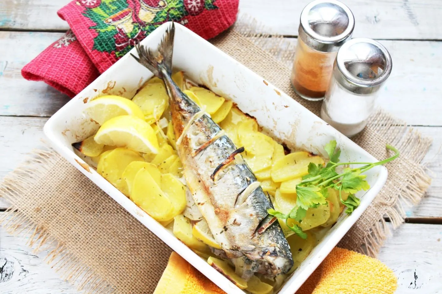 Запечену скумбрію можна подавати на стіл з картоплею / Фото Pinterest