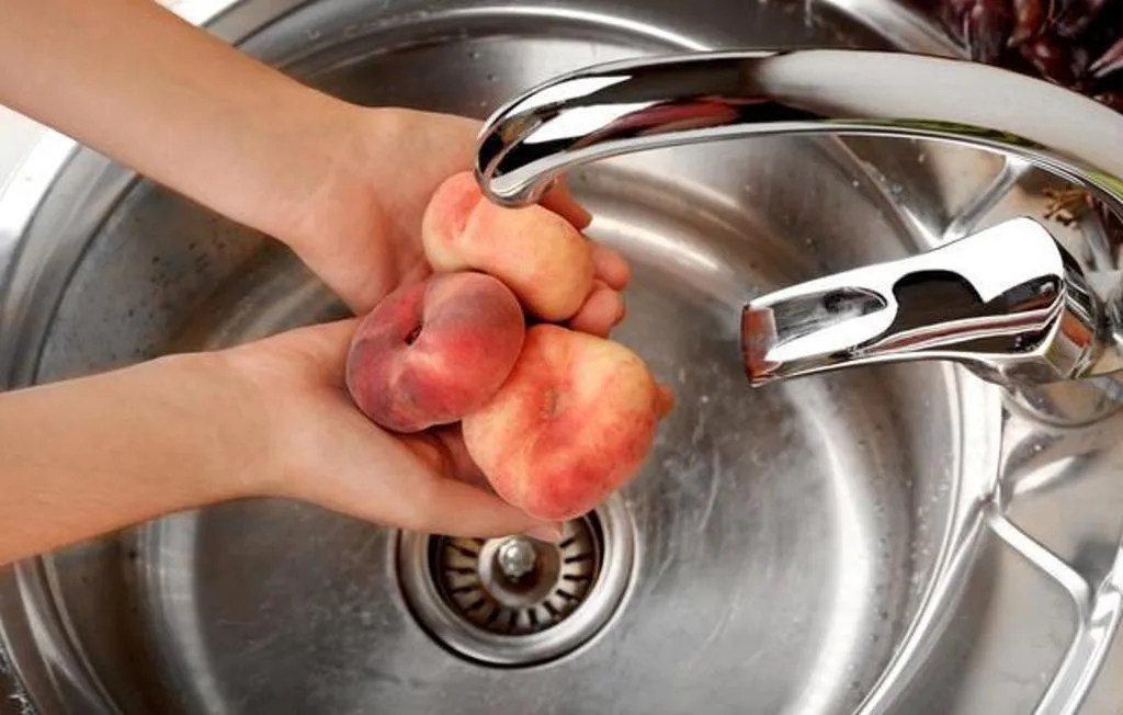 Перед тим, як з'їсти персик, потрібно добре його промити. На шкірці живе багато бактерій і грибків, які легко можуть потрапити в організм. Для того, щоб персик був безпечним для вживання, недостатньо просто промити його під краном. Замочіть фрукти у холодній воді на 5 хвилин і добре протріть. Після цього варто сполоснути під проточною водою і можна куштувати.