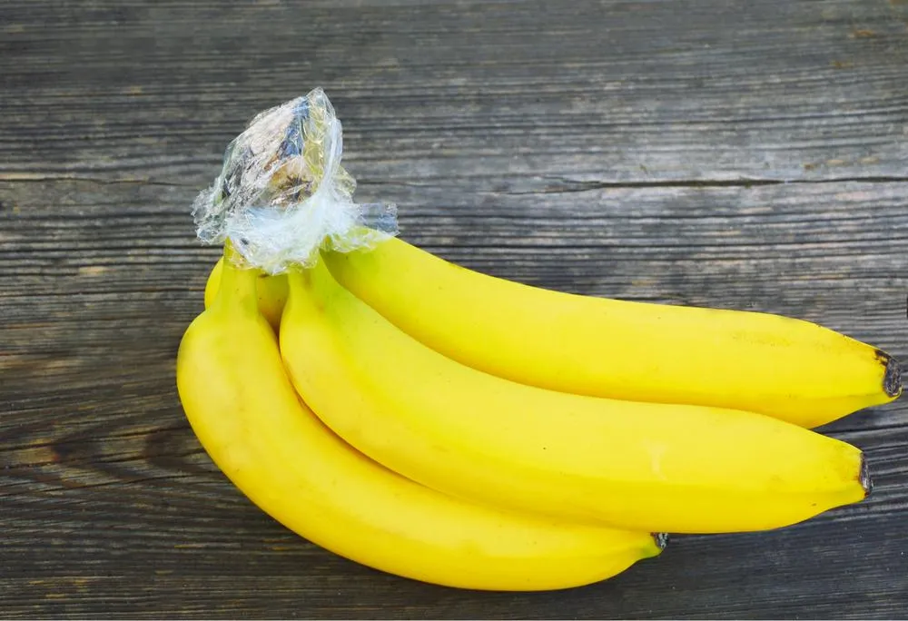 3. Збільште термін зберігання бананів, обгорнувши хвостики плівкою