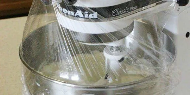 4. Щоб не забруднити стіни й полиці, готуючи тісто чи крем, обгорніть кухонний комбайн плівкою