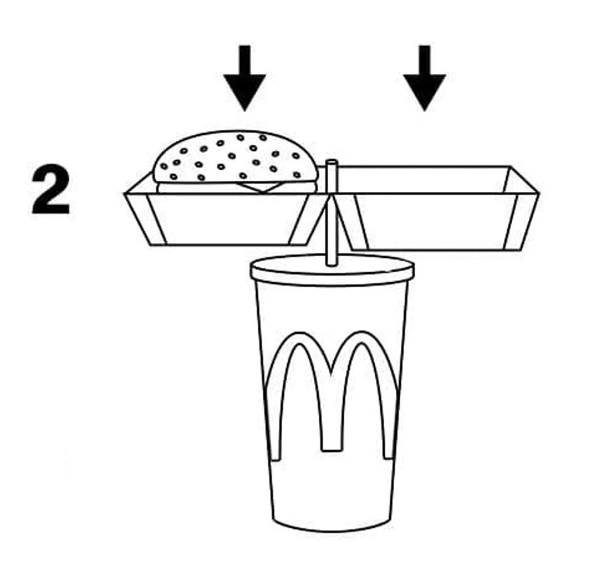 2. На другому етапі потрібно відкрити коробку з бургером і поставити її на склянку з напоєм таким чином, щоб соломинку вставити у спеціальний отвір.