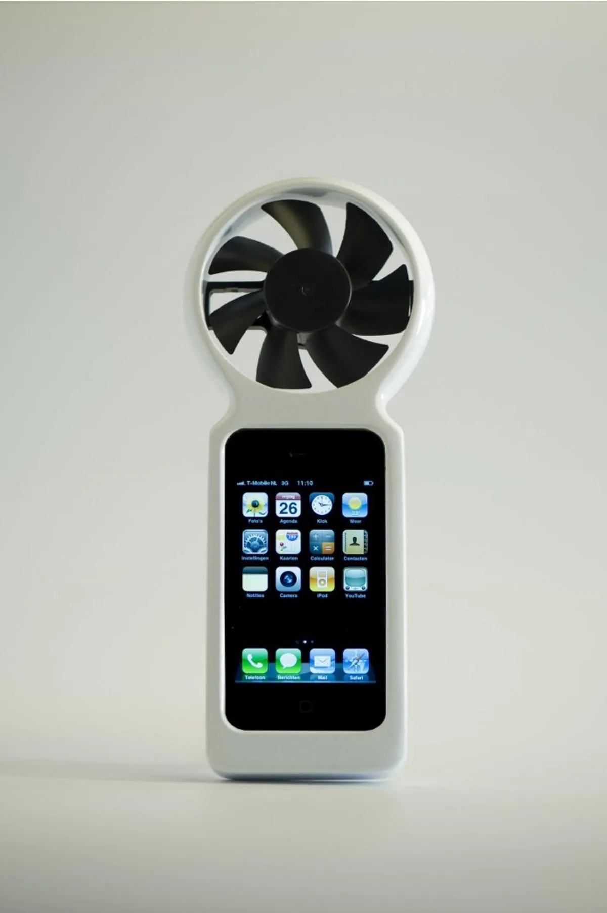 Умовно кажучи, цей пристрій має вигляд чохла з вентилятором для телефона. Працюючи від вітру, вентилятор таким чином заряджає ваш телефон.