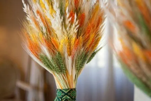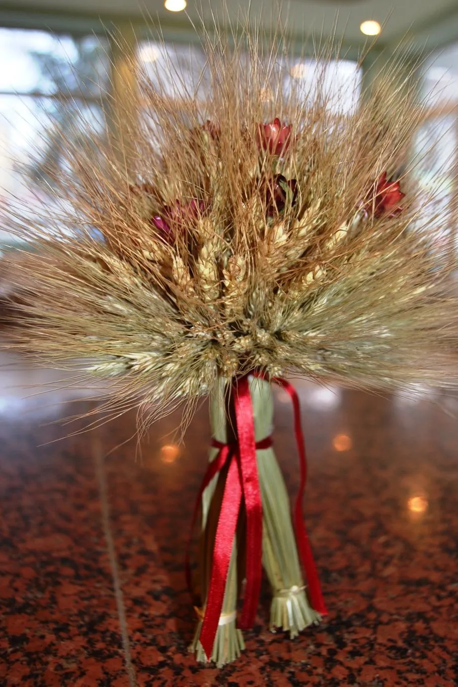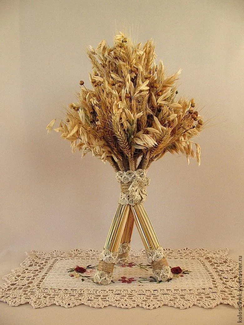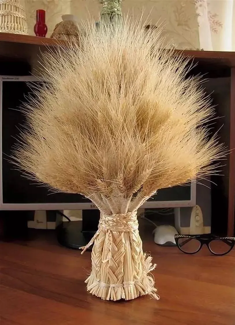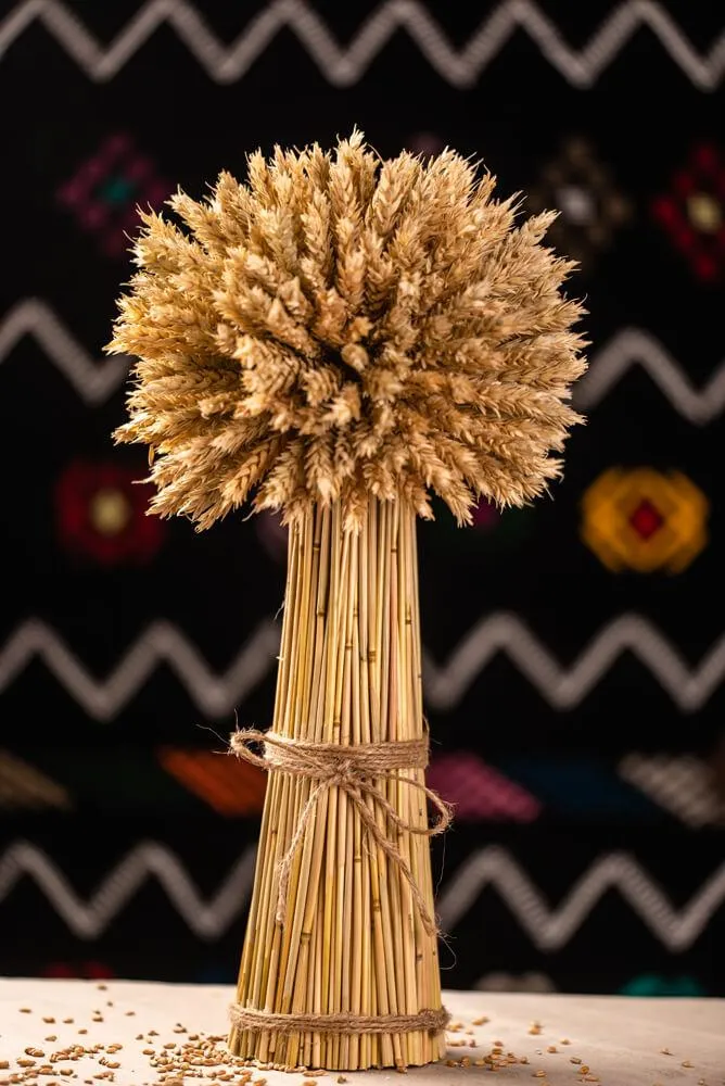 1. Дідух з великої кількості пшеничних колосків і з мінімальним декором у вигляді декоративних ниток