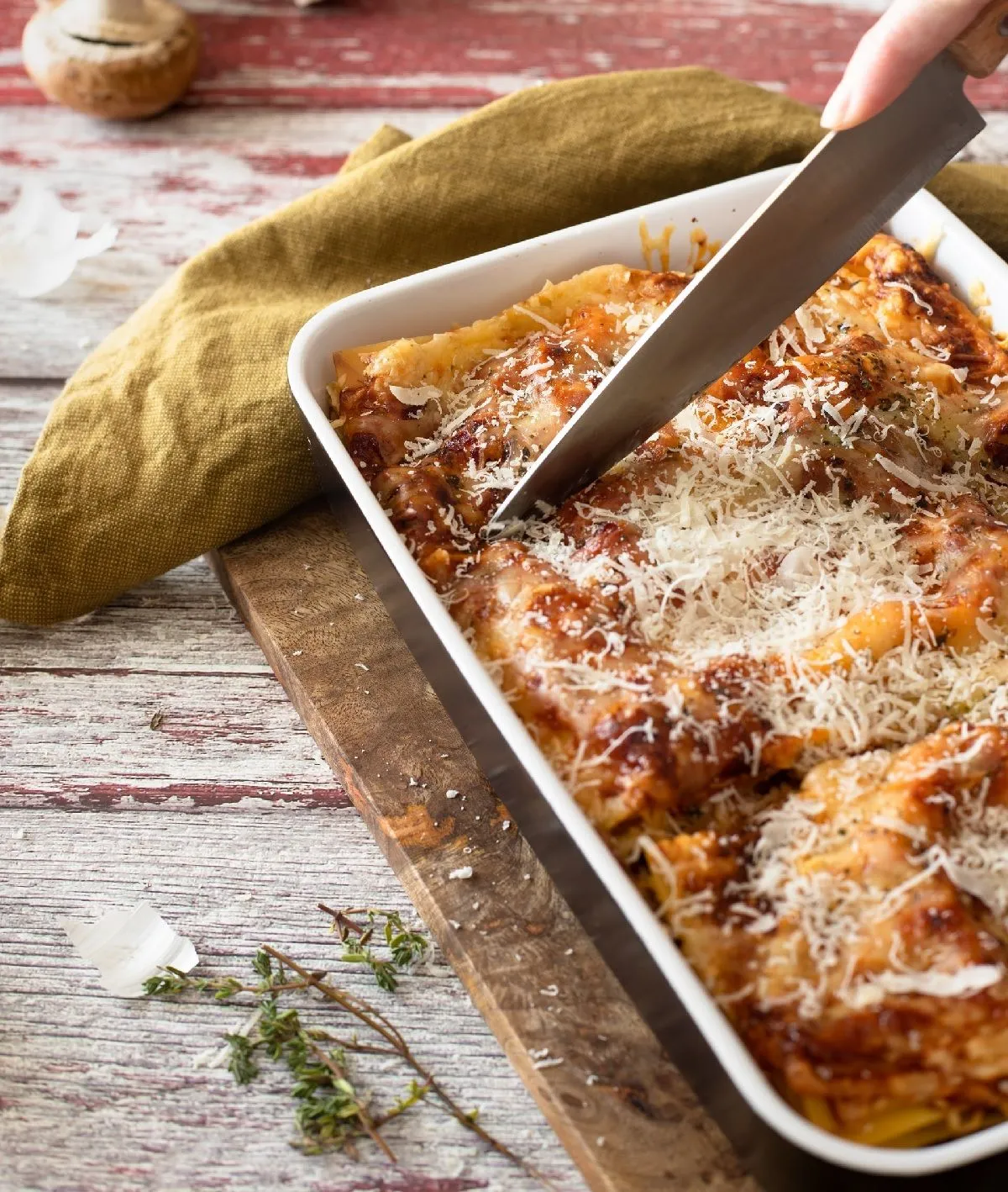 Крок 4. Виделкою відділіть м'якуш гарбуза від шкірки та додайте у фарш. Розігрійте духовку до 200 градусів. Перекладіть суміш у місткість для випікання, натріть зверху сир та відправте готуватись на 15 хвилин. Перед подачею прикрасьте базиліком і насолоджуйтесь смачною вечерею.